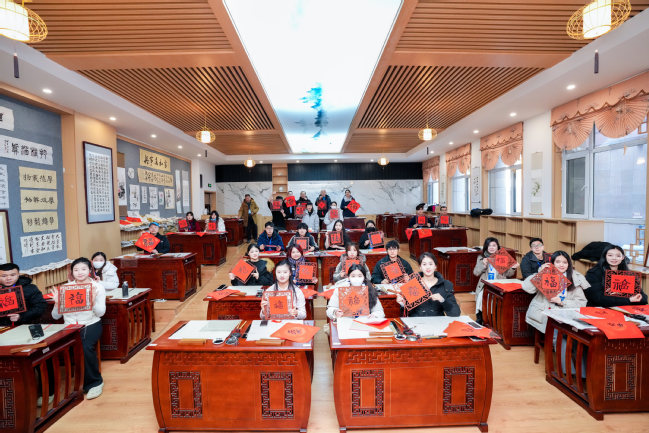 开营仪式结束后,参加冬令营的台湾青年们走进我校铸牢中华民族共同体意识教育实践基地(美育浸润实践基地),亲身体验了书法、剪纸、脸谱绘画、新疆奶茶制作等文化活动,领略中华优秀传统文化的博大精深和深厚魅力。
