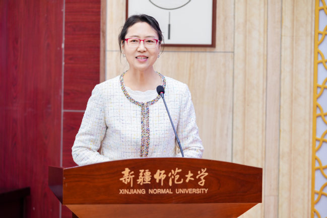 阎梅对我校的大力支持表示感谢,她表示,新疆深厚的历史文化气息和独特多样的自然风光都极具吸引力,希望台湾青年们此行能够亲身领略新疆美景、体验民俗风情,感受新疆经济社会发展成就。