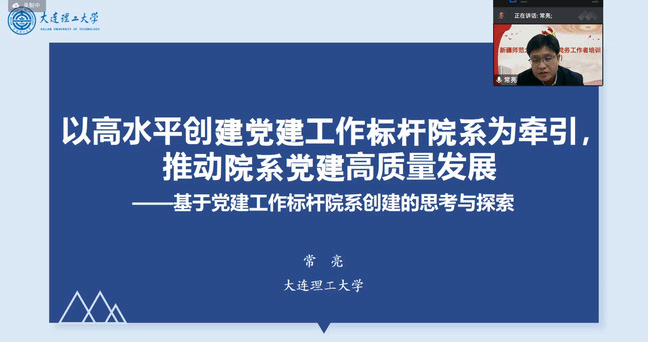 培训会上,大连理工大学建筑与艺术学院党委书记常亮作了题为《以高水平创建党建工作标杆院系为牵引,推动院系党建高质量发展》的专题讲座,全面介绍了学院作为全国党建工作“标杆院系”,创新建立支部选派“第一书记”工作制度的党建工作方法和具体举措。