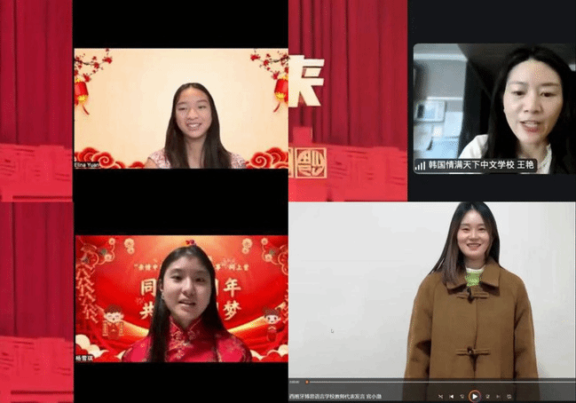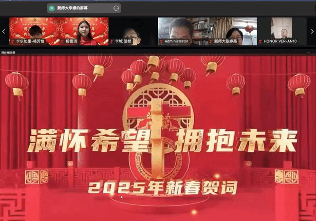1月23日,由中国侨联主办,新疆侨联和我校联合承办的2025“亲情中华·我与春节的故事”新疆侨联网上营活动顺利开营。新疆侨联文化交流部副部长孙辉、我校国际文化交流学院副院长邓新、塔城地区侨联秘书长胡瓦提·卡得尔拜克、克拉玛依市侨联赵欣云,以及来自韩国情满天下中文学校校长王艳、加拿大亚省中文学校教师闫蕾和赞比亚华人商会会长李钢参加了开营仪式。