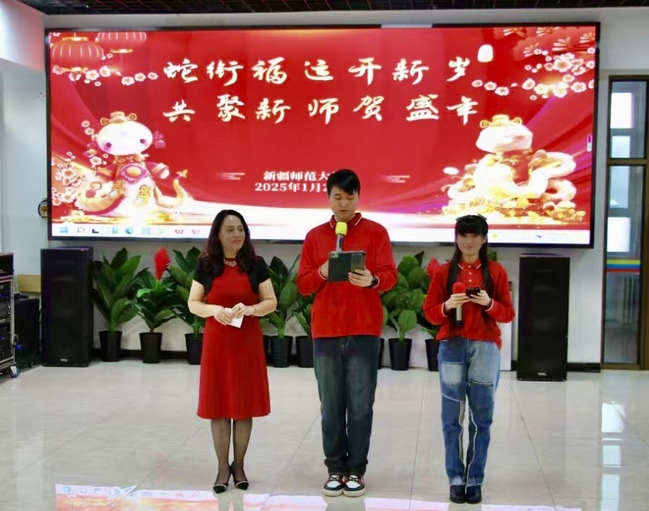 福蛇迎春、巳巳如意。1月28日除夕当天,我校分别在温泉校区、昆仑校区举行“蛇衔福运开新岁 共聚新师贺新年”—寒假留校师生2025乙巳蛇年新春联谊活动。校党委常委、副校长帕提曼·吐尔逊,校党委常委、副校长帕力旦·吐尔逊分别出席温泉校区、昆仑校区联谊活动,相关职能部门负责人、寒假值班值守教职员工以及在校的来华留学生欢聚一堂,共话乙巳新春。