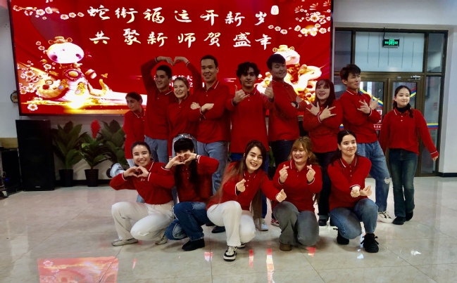 在活动开始前,学校营造了热闹喜庆的节日氛围,大家一起放鞭炮,让师生们感受到了红红火火、喜庆吉祥的浓浓年味。联谊活动上来自不同国家的留学生们表演了《青春舞曲》《我们一起跳舞吧》等精彩的文艺节目,赢得了现场观众的热烈掌声与欢呼。后勤综合服务中心、保卫处、派出所等部门的职工代表为师生们送上了新年祝福。