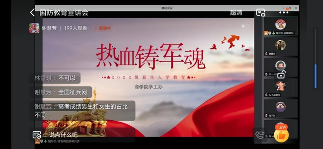 近期,各学院以主题班会、年级会议等形式陆续在线上开展了疫情防控安全教育、校史院史及专业介绍、学业成绩和学分绩点、防范电信诈骗、国防教育、资助体系介绍、第二课堂成绩等丰富多彩的新生入学教育活动,取得了良好的效果。