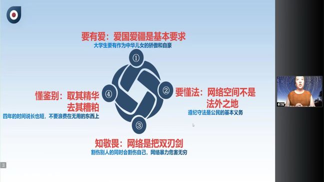自治区网信办专家王瑾通过讲解高校面临的网络风险和大学生网络行为规范,结合案例教育新生要强化网络安全意识,提高对网络信息的辨别能力,在使用网络的过程中做到“要有爱”“要懂法”“知敬畏”“懂鉴别”。