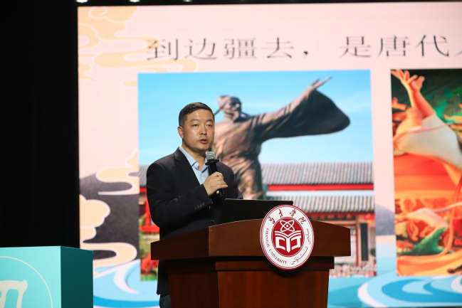 活动中,我校历史与社会学院副院长严学勤作“西域华服的故事”社科普及讲座,随后开展了《岁时巡礼,高昌风华》情景秀,以及《梦回高昌》情景剧。情景剧讲述了来自21世纪的四名大学生在高昌故城参观时穿越回唐代的高昌,偶遇边塞诗人岑参,同游高昌集市,参加高昌夜宴的故事,让观看的同学们在欣赏古代服饰艺术的同时接受社科知识普及,了解了唐代时候的新疆服饰和生活场景,感受了唐代戍边将士的家国情怀,进一步增强对于中华文化的认同,铸牢中华民族共同体意识。