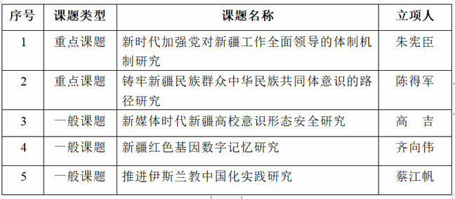 近日,新疆党建研究会印发《关于表彰2021年度党的建设和组织工作优秀调研课题成果的决定》,通报表扬了2021年度党的建设和组织工作优秀调研课题成果。新疆党建研究会高校党建研究专业委员会印发《关于2022年度高校党建研究课题立项的通知》,批准我校5项课题获得高校党建研究课题立项资助,其中重点课题2项、一般课题3项。