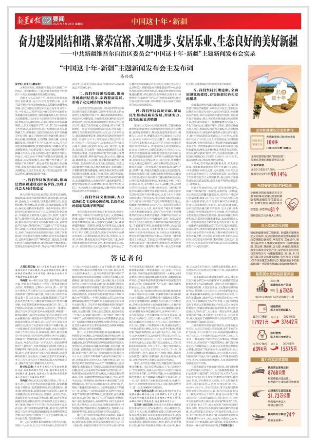 “中国这十年·新疆”主题新闻发布会主发布词