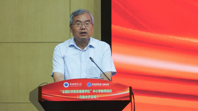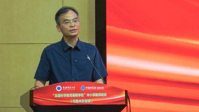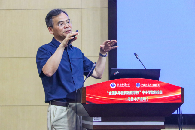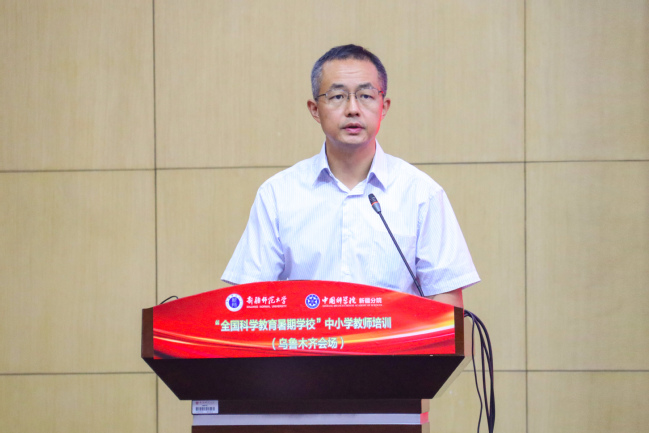 7月28日上午10时,全国科学教育暑期学校中小学教师培训项目乌鲁木齐会场在我校昆仑校区启动。乌鲁木齐市、昌吉州和新疆生产建设兵团推荐选派的100名小学科学教师参加了此次培训。中国科学院院士、中国科学院新疆分院院长肖文交,自治区人民政府督学孙红新,新疆师范大学党委常委、副校长王晓峰出席了启动仪式。启动仪式由新疆师范大学党委常委、副校长帕力旦·吐尔逊主持。