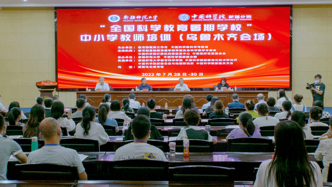 全国科学教育暑期学校中小学教师培训项目是由教育部教师工作司和中国科学院科学传播局共同主办,教育部基础教育教学指导委员会科学专业委员会和中国科学院网络信息中心具体指导下开展的一项全国性科教融合式培训项目,全国共设12个会场,中国教师发展基金会提供经费支持。乌鲁木齐会场由新疆师范大学和中国科学院新疆分院承办,新疆师范大学教育科学学院、中国科学院新疆理化技术研究所、中国科学院新疆生态与地理研究所、中国科学院新疆天文台具体实施。