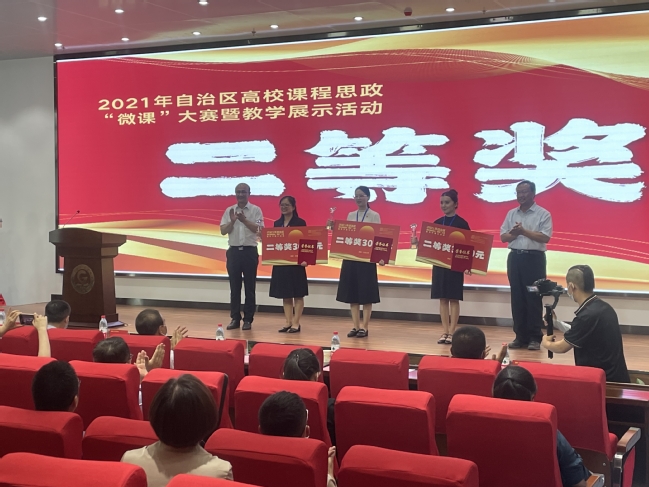 7月2日,自治区高校课程思政“微课”大赛落下帷幕,我校2名教师参加比赛,最终获得二等奖1项、优秀奖1项,学校荣获本届赛事优秀组织奖。