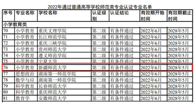 《2022年通过普通高等学校师范类专业认证专业名单》