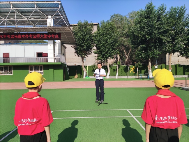 7月5日上午,在附属中学校园举行了夏令营开营仪式,附属中学全体校领导,师大校团委书记陆娇、党委组织部五项办主任蔡永亮、大学生志愿者、全体授课教师参加了仪式。开营仪式在雄壮的国歌声中拉开序幕,全体学生进行国旗下宣誓,附属中学党委书记吕志新进行开营致辞,他代表附中5000名师生,对不远千里来到天山脚下参加夏令营活动的师生表示热烈的欢迎,他对孩子们提出几点具体要求:希望同学们能够珍惜来之不易的学习机会,增强安全意识,严格遵守疫情防控要求,遵守夏令营各项管理制度,锻炼自己,学会与人和睦相处,学到更多的知识,懂得更多的道理,快乐地度过一个丰富多彩的、充实的、有意义的暑假,为自己的人生留下美好回忆。