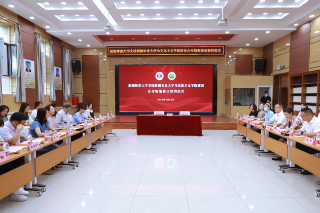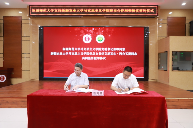随后,我校马克思主义学院党委书记张峥与新疆农业大学马克思主义学院党总支书记艾尼瓦尔·阿合买提共同签署框架协议。