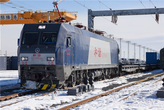在新疆乌鲁木齐,一列中欧班列缓缓驶离中欧班列乌鲁木齐集结中心开往土耳其(2020年2月20日摄)。新华社记者 丁磊 摄