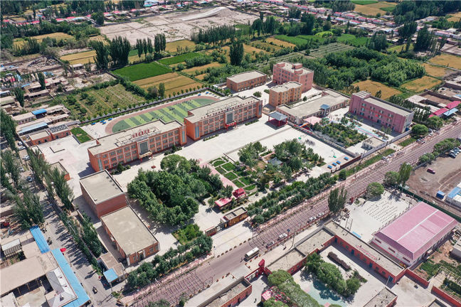 这是新疆喀什地区疏附县托克扎克镇中心小学(2022年6月10日摄,无人机照片)。新华社记者 丁磊 摄