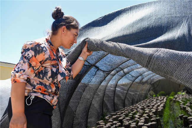 在新疆乌什县依麻木镇,在新疆维吾尔自治区党委组织部、老干部局驻托万克麦盖提村“访民情惠民生聚民心”工作队的帮助下,不少村民通过培植木耳增收致富(2022年6月7日摄)。新华社记者 丁磊 摄