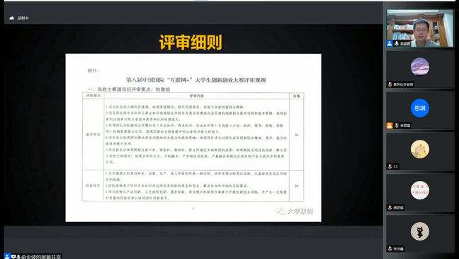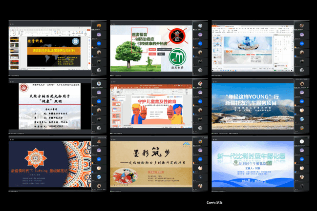 本期训练营活动分四期进行。严格按照学校防疫要求,采取“线上汇报+指导” “专训+提升” “理论+模拟”相结合的方式进行。第一期培训以“互联网+商务文本撰写技巧”为主题,通过专家讲解优秀项目计划书(PPT版)撰写要点、优秀商业计划书(PPT版)案例分析、详细版商业计划书(WORD)编写要点及案例分析、项目视频制作思路及优秀案例分析等方式,详细讲授了优秀项目的制作思路与制作方法。后三期培训以“创业项目网评材料辅导”为主题,从主赛道本科生创意组、研究生创意组分别选择代表性和典型性项目,针对该类网评材料存在的共性问题进行了分析指导及拓展。