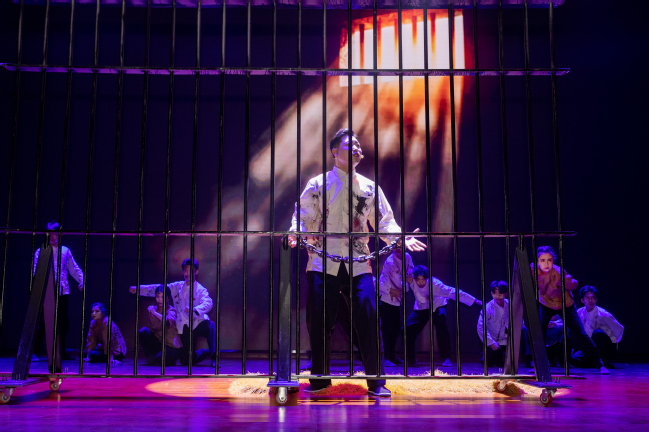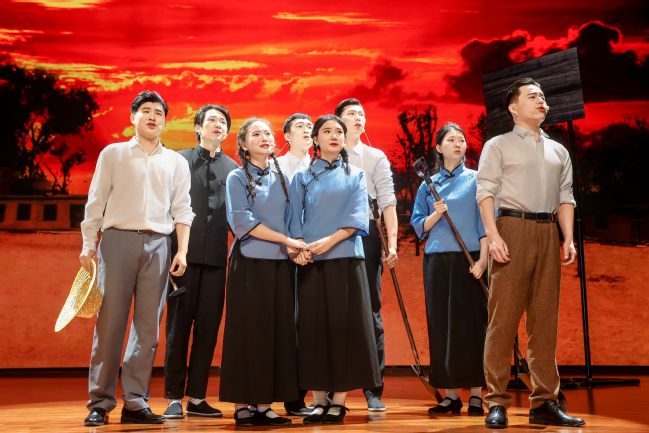 随后,全场观众共同观看了话剧《红流》。演出全程,观众被生动的剧情深深吸引,当看到师范学校建设时,他们为文斐然等共产党人的教育情怀所感染;听到学生们唱起《松花江上》,看到舞蹈《囚徒歌》展现狱中斗争场景时,不少观众眼中泛起泪花,沉浸在对国土沦陷的悲痛以及对共产党人坚定信念的崇高敬意中;抗战募捐场景让观众们被进步学生和百姓的爱国热情打动。现场气氛热烈,观众们激动地挥舞国旗,多次响起经久不息的掌声。