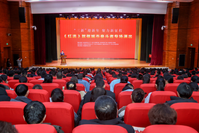 1月3日,由自治区关工委、自治区总工会、自治区工商联主办,乌鲁木齐市关工委、昌吉州关工委协办,我校承办的“‘三新’迎新年 聚力新征程——《红流》致敬城市奋斗者”专场演出在温泉校区昆仑讲堂举行,我校原创红色校史剧《红流》再度上演,弘扬爱国奋斗精神,为新时代建设增添精神动力。