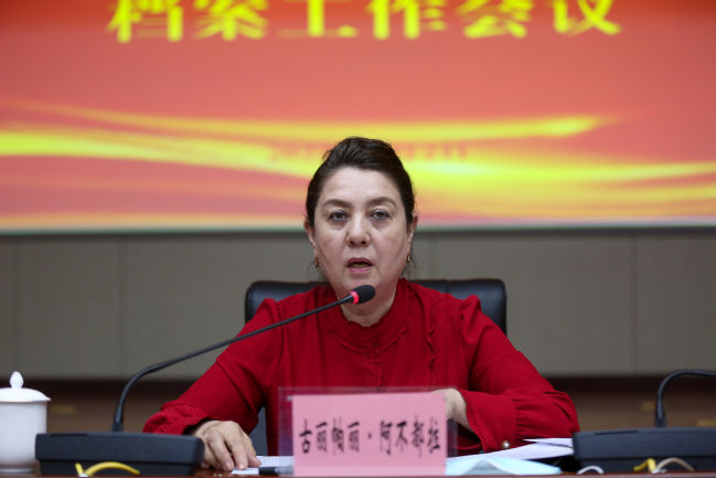 古丽帕丽·阿不都拉在讲话中充分肯定了学校各级部门档案工作取得的成绩,对工作中存在的问题进行了客观分析,并提出了具有针对性、指导性和可操作性的意见,为我校今后的档案工作明确了目标、指明了方向。她指出,档案工作是一项记录历史、传承文明、服务社会、造福人民的事业,是党和国家事业发展不可或缺的一项基础性、支撑性工作。学校各级档案工作者要切实增强做好档案工作的神圣感、使命感、光荣感。一是要把学习贯彻习近平总书记对档案工作的重要批示精神与推动学校改革事业发展结合起来,发挥好档案存史、咨政、育人的重要作用;二是加强党对档案工作的组织领导,坚持党管档案原则,健全档案工作体制,落实档案工作责任,抓好新修订《档案法》的学习贯彻,不断提高档案工作的制度化、规范化、科学化水平;三是加快推进学校档案信息化工作,将档案信息化建设纳入学校信息化发展规划,创新工作理念、方法、模式,立足当前、着眼长远,提高档案收、管、用等方面工作效率;四是增强底线思维,铸牢防线屏障,时刻绷紧档案安全这根弦,抓好档案安全防范各项责任措施的落实。