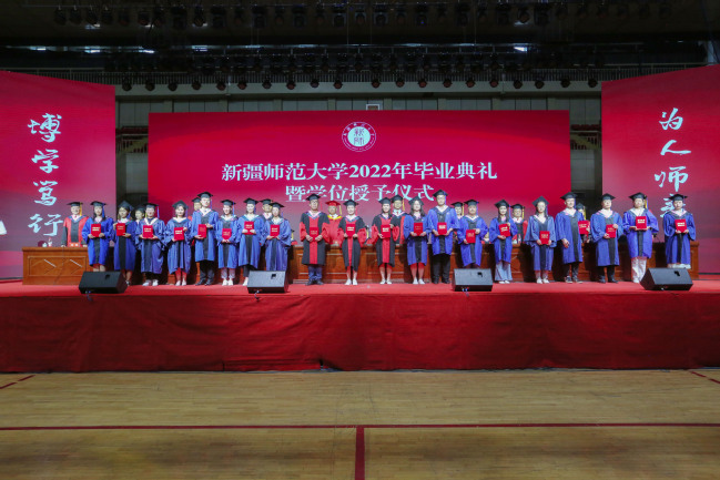 典礼在雄壮的国歌声中正式开始。由校领导分别宣读《关于授予程世平等18名2022届及历届毕业研究生博士学位的决定》《关于授予李乐芳等980名2022届及历届毕业研究生硕士学位的决定》《关于授予塔米尔洛洼·扎尔可乃等4名2022届及历届来华留学生毕业研究生硕士学位的决定》《关于授予刘凤华等4079名2022届及历届普通本科毕业生学士学位的决定》《关于授予欧斯曼扎诺娃•玛丽卡姆等12名2022届及历届来华留学本科毕业生学士学位的决定》《关于表彰奖励2022届优秀博士、硕士学位论文获得者及指导教师的决定》《关于表彰奖励2022届优秀本科学位论文(设计)获得者及指导教师的决定》《关于表彰新疆师范大学2022届优秀本专科毕业生的决定》。宣读完毕,校领导为200名优秀毕业生代表拨穗正冠并颁发学位证书,对优秀毕业论文指导教师、优秀学位论文学生代表以及优秀本专科毕业生代表进行表彰颁奖。