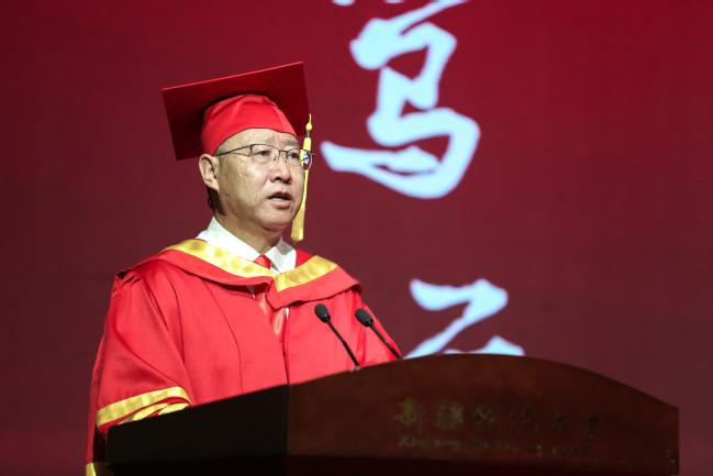 校党委书记葛国作致辞,回顾了2022届毕业生从聆听入学第一课到穿上毕业学士服,挥洒汗水与激情、探求真知和真理的求学历程,深情寄语2022届毕业生在未来的人生道路上,要秉承师大精神,怀济世情怀,受天下之善,绘美好人生,勇于为国家、为民族、为社会承担责任,在国家建设、民族复兴的伟大事业中大显身手,大有作为,并祝福毕业生们在未来的人生道路上踔厉奋发、勇毅前行。