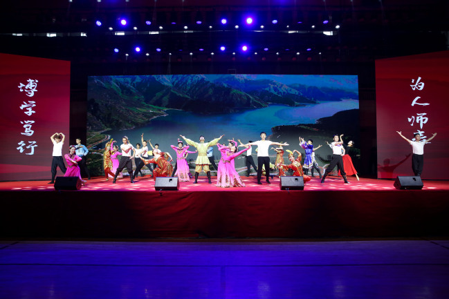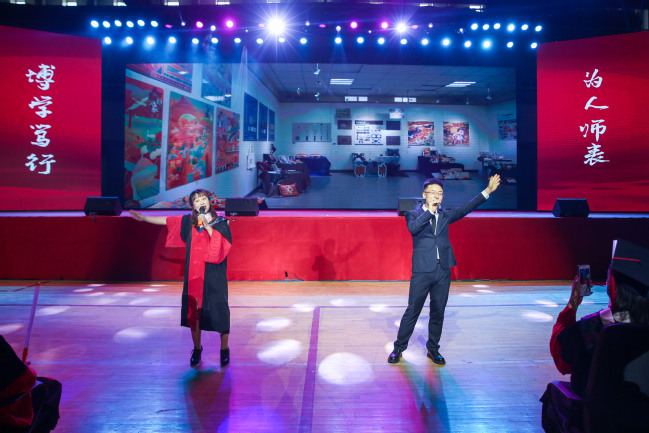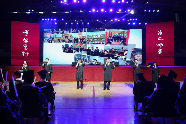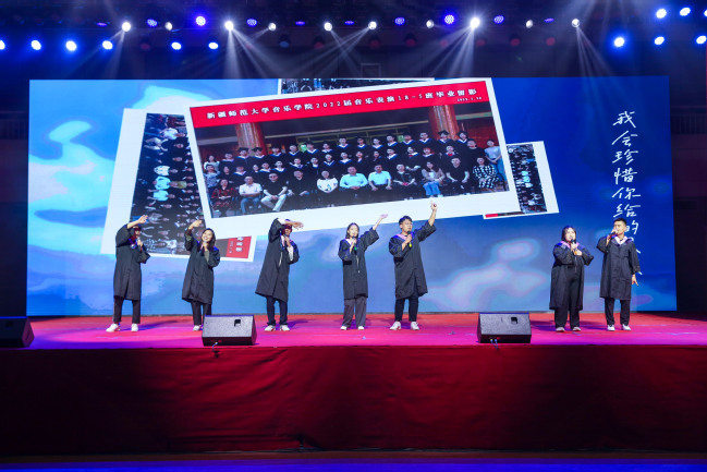 典礼结束后,全体师生共同观看了毕业文艺汇演。歌曲《那些花儿》《一生有你》《不说再见》,展现了意气风发的新师学子感校恩、念友谊,许下他日再相见的美好约定;情景剧《凤凰花开的路口》,通过教室、宿舍等情景演绎四年的大学校园生活,诠释了校园生活留给毕业生的感动和美好记忆;歌曲串烧《明天你好》《放心去飞》《祝你一路顺风》《我的未来不是梦》,彰显怀揣理想抱负的新师青年即将踏入社会,以青春之名踏上充满希望与向往的未来之路的美好憧憬;民族舞《歌舞天山》,通过舞蹈生动展示民族团结一家亲的美好画卷,展现毕业学子对母校以及大美新疆的不舍情怀;歌曲《再见》,敲响了毕业生们惜别母校的钟声,毕业生们共同呐喊出我们再见的青春誓言。