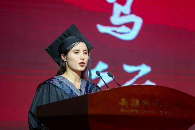 化学化工学院化学18-3班布鲁努尔·玉散作为毕业生代表发言