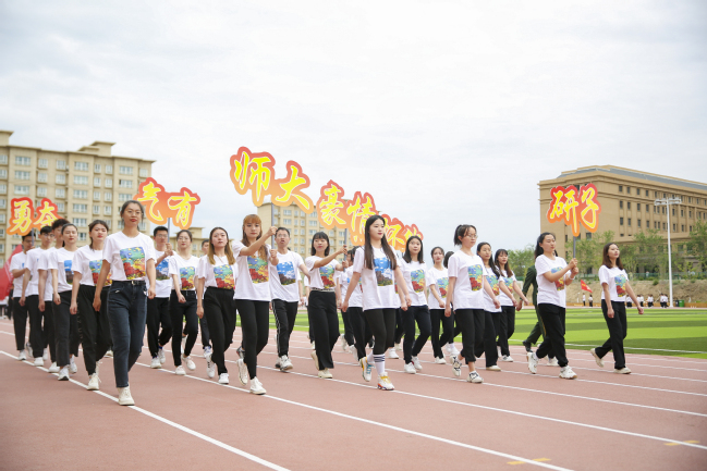 于祥成表示,近年来学校党委高度重视学生身心健康和体育教育工作,完成了温泉校区运动场塑胶跑道和人工草皮的铺设,升级改造了三校区篮球场、羽毛球场、排球场和小足球场等基础体育设施,增加了乒乓球桌和体育健身器材,为广大师生开展体育健身活动提供了便利条件。学校还制定出台了《新疆师范大学新时代体育工作实施方案》,坚持公共体育和专业体育两手抓,鼓励有体育特长的学生走出去参加各类比赛。此外,学校持续丰富体育课程和活动,在确保高质量上好公共体育课程的同时,组织了丰富多彩的体育活动。第八届精英杯校园篮球挑战赛近几日就在校园中如火如荼地进行,校园里教室、图书馆、运动场处处都洋溢着青春的热情和气息。