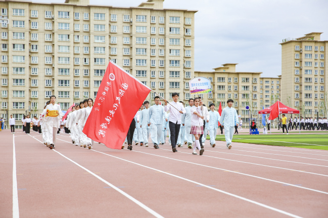 开幕式上,本届运动会总裁判长彭立群、运动员代表崔皓宇进行了宣誓。在激昂的音乐声中,国旗方队、退役军人方队、红旗方队、裁判员方队、研究生代表队和各学院代表队身着统一服装、迈着整齐步伐、高喊嘹亮口号通过主席台,接受在场师生的检阅,展现了青年大学生朝气蓬勃、昂扬向上、奋发有为的精神面貌,赢得了在场师生的阵阵掌声。