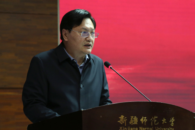 曾任学校“访惠聚”驻村工作队总领队、近期返校的党委常委、宣传部部长高靖从人员选派、关心关爱、组织保障和工作成效等四个方面介绍了我校承担自治区“访惠聚”驻村工作任务情况。自2014年自治区启动“访惠聚”驻村工作以来,我校先后向喀什地区莎车县14个乡镇的104个村选派了490名“访惠聚”驻村干部教师,他们把“论文”写在脱贫攻坚、乡村振兴的广阔大地上,攻坚克难,担当作为,为自治区的社会稳定和长治久安做出了应有的贡献。学校先后有13个工作队和176名驻村干部教师获得自治区年度“访惠聚”驻村工作先进集体和先进个人荣誉,学校4次荣获优秀组织单位称号。