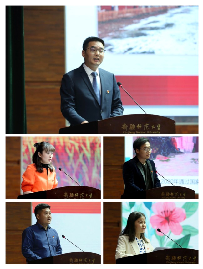 会上,五位驻村干部教师代表就各自驻村体会与收获进行汇报。实验与设备管理处陈华东讲述了自己在乡村助力脱贫摘帽、村民由贫到富的变迁过程;国际合作与交流处蒲洁分享了她改造图书室带领村里的孩子读书学习的感人故事;音乐学院侯天举汇报了自己发挥专业特长带领村民放歌乡村大舞台,丰富精神生活的心得;数学科学学院唐泉讲述了如何让科技托底、项目发力,推动乡村振兴的体会;教育科学学院巴肯山·阿力腾巴特分享了助已达人、实现个人价值的心路历程。五位汇报人一边展示精心制作的视频,一边讲述自己的亲身经历,一帧帧视频宛如场景再现,一个个故事感人肺腑,引起了全体干部教师强烈共鸣。