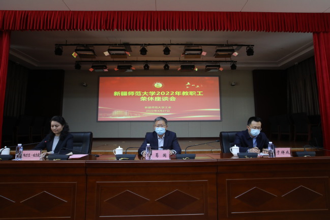4月27日下午,我校2022年第一季度退休教职工荣休座谈会在温泉校区行政楼第五会议室举行。校党委书记葛国,党委副书记、副校长于祥成,党委常委、副校长帕力旦·吐尔逊出席座谈会。第一季度退休教职工,组织部、工会、人事处、离退休职工管理服务中心、各学院主要领导及基层工会主席共70余人参加座谈会。座谈会由帕力旦·吐尔逊主持。