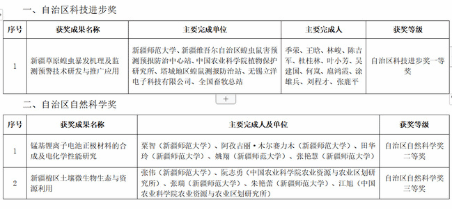 近年来,在学校党委的正确领导和教职工的共同努力下,我校教职工科研积极性持续提升,科学技术领域不断取得新突破。4月29日,在新疆人民会堂召开的自治区科技创新大会上,由我校教师主持及参与完成的4项科技成果喜获自治区科学技术奖励,其中,科学技术进步奖一等奖1项、科学技术进步奖二等奖1项(参与完成)、自然科学奖二等奖1项、自然科学奖三等奖1项。获奖数量和获奖级别均创历史新高,有力推动了我校科学技术领域研究的发展。