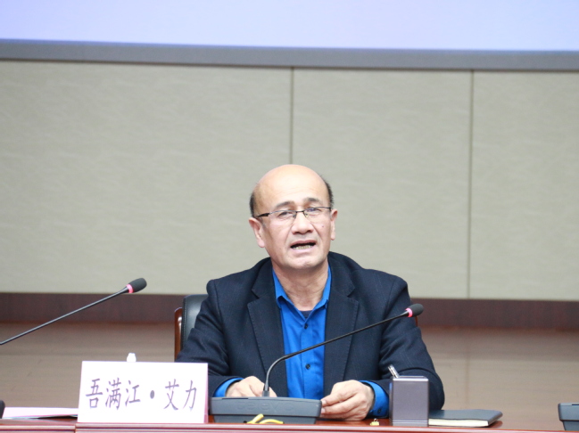 最后,吾满江·艾力进行总结讲话。他首先对各位教学督导的辛勤工作表示衷心感谢,对督导们提出的问题和建议给予了高度肯定,并对接下来的本科教学工作提出了三点要求:一是全面提高认识,强化内涵导向。各学院要以“立德树人”为遵循,坚持“以本为本”,激励教师积极投身于教书育人工作;二是落实学院主体责任,建立健全教学质量保障体系,规范教学各环节工作,完善持续改进机制;三是加强督导赋能,助力学院内涵建设。要充分利用督导的力量,以督导丰富的经验与专业知识,助力学院教学工作。