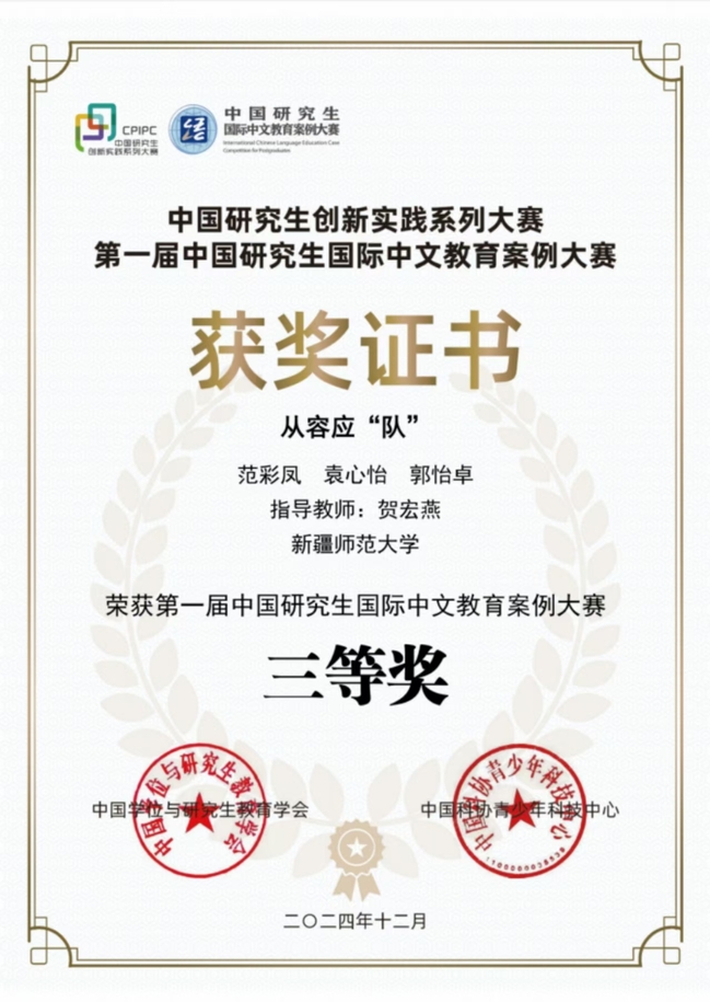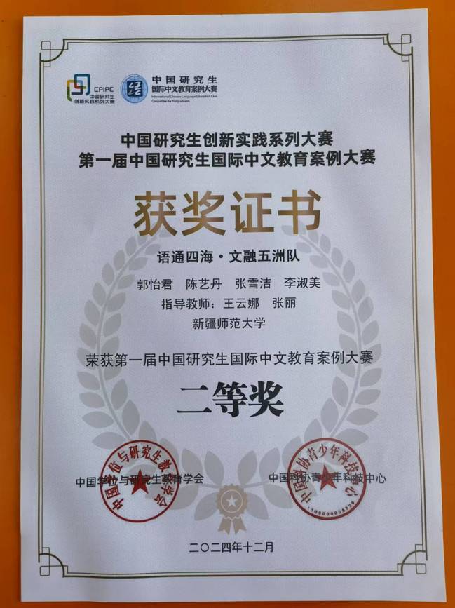 自比赛开始以来,我校国际文化交流学院教师王云娜、张丽指导的硕士研究生郭怡君、陈艺丹、张雪洁、李淑美团队以及贺宏燕指导的硕士研究生范彩凤、袁心怡、郭怡卓团队,深入钻研国际中文教育前沿理论与实际问题,精心挑选案例主题,认真打磨案例内容,反复进行模拟训练,经过不懈努力,突破选拔赛进入国赛梯队,并在总决赛中表现突出,最终取得全国二等奖一项、三等奖一项的好成绩,充分体现了学校在国际中文教育人才培养方面的较好成效,也彰显了我校国际中文教育的专业实力。