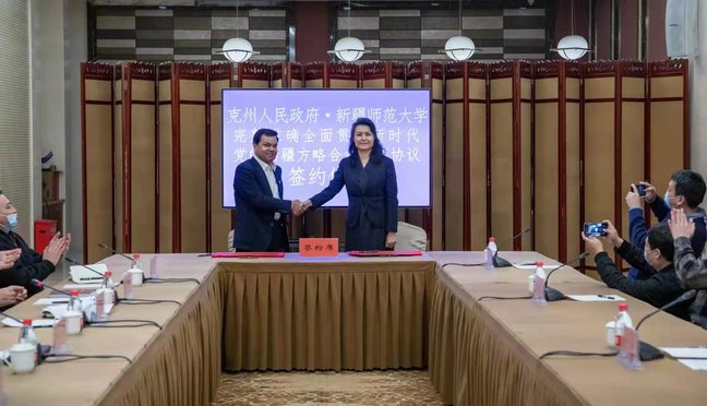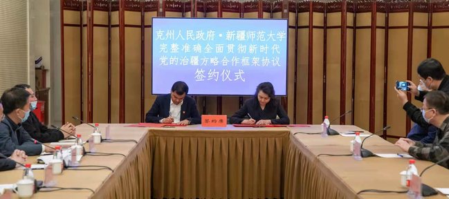 3月21日,校党委常委、副校长帕力旦·吐尔逊一行赴阿图什市,代表学校与克孜勒苏柯尔克孜自治州人民政府签订了《克孜勒苏柯尔克孜自治州人民政府——新疆师范大学完整准确贯彻新时代党的治疆方略合作框架协议》,克孜勒苏柯尔克孜自治州副州长阿不都卡德尔·毛尼亚孜参加签订仪式。