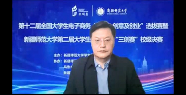 4月9日上午,第十二届全国大学生电子商务“创新、创意及创业”选拔赛暨新疆师范大学第二届大学生电子商务“三创赛”校级决赛以线上方式举行。校党委常委、宣传部部长高靖出席并致辞。国家级创新创业大赛评委夏军、主马什、丁国冲、王斐玉,国家级创业培训师吴卫萍、阿里木及自治区级创新创业大赛评委杨卫东、刘新宇、王双午担任本次大赛评委;特邀中共新疆师范大学纪律检查委员会张辉斌担任纪检工作人员;新疆不倒翁信息科技有限公司余会平担任仲裁人员。新疆不倒翁信息科技有限公司商学院总监马雅参加开幕式。