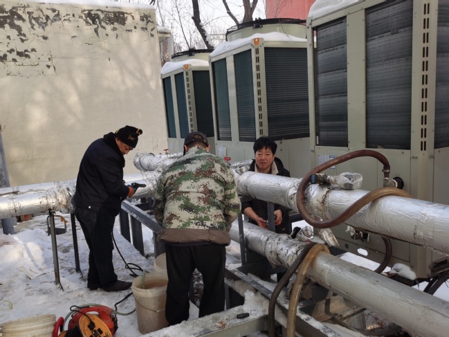 为保证这一“暖心窝”工程的顺利实施,后勤综合服务中心对宿舍楼所有空气能设备进行了除垢清洗,对控制系统相关零部件进行维护更换,并针对温泉校区不同宿舍楼宇空气能设备出现的问题,增加了2台100KW的电锅炉和若干20立方米的储热水箱;针对昆仑校区国教楼空气能设备出现的制热不足问题,完成风道加装、辅助热源加装和储热水箱扩容,极大地提高了极寒天气时设备的制热和储热能力。