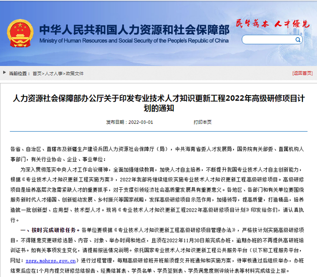 我校获批人力资源和社会保障部专业技术人才知识更新工程高级研修项目