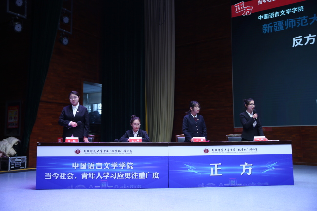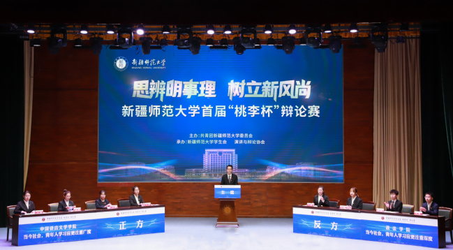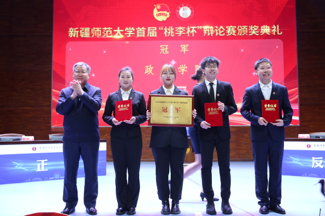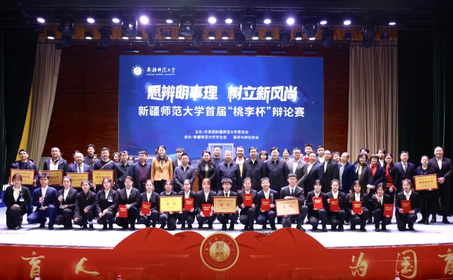 3月30日下午,我校首届“桃李杯”辩论赛决赛暨颁奖仪式在温泉校区昆仑讲堂举行。校党委书记葛国,副校长古丽帕丽·阿不都拉,党委常委、副校长李魁铭,党委常委、纪委书记王志勇,党委常委、宣传部部长高靖,党委常委、组织部部长李建荣出席活动并为获奖团队及个人颁奖,各学院党委书记、副书记以及师生代表共300余人参加活动。