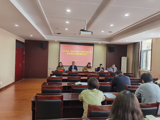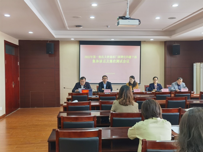 为进一步加强我校后备干部培养,强化科级干部队伍党风廉政建设,3月30日上午11:00,2022年第一批机关教辅部门新聘任科级干部集体谈话及廉政测试在温泉校区319会议室举行,校党委常委、组织部部长李建荣,组织部副部长冯跃武,机关党委副书记、纪委书记侯新超以及2022年新聘任的16名科级干部参加会议,会议由机关党委书记张秀红主持。