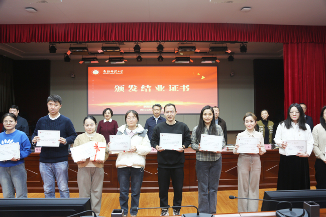 结业典礼上,参会领导为培训合格教师颁发了结业证书并赠送书籍《论教育》。