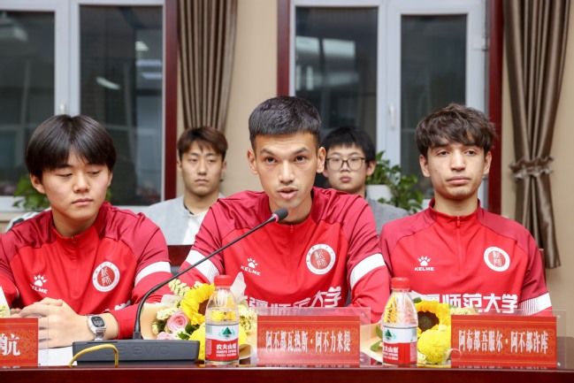 球队主教练阿尔肯·阿不都瓦依提在发言中表示,这次比赛是自己执教多年来的一份答卷,成绩的背后凝聚着全体队员的辛勤努力与汗水,感谢学校多年来对球队的关注和支持,感谢队员们全身心的投入与坚持。他坚信,通过大家的共同努力,新疆足球事业必将取得长足发展,未来球队也将继续努力,向赛事冠军发起冲击。