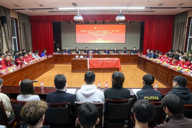 座谈会上,体育学院党委书记高刚介绍了此次比赛情况及学校五人制足球事业发展历程。我校自2016年起,连续多年参与中国大学生五人制足球赛联赛。学校多年来立足本校学生群体,着力培养足球专项大学生作为队伍核心力量出战,累计16人次入选中国五人制国家队和青年队,近20人成为中国五人制足球联赛职业球员,其中2人获得中国五人制足球金球奖提名,为学校及新疆地区五人制足球事业争得了显著荣耀,在国内高校五人制足球领域展现出较为突出的竞争力与影响力。