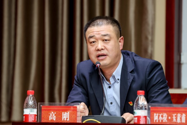 我校五人制足球队队员、物理与电子工程学院物理学21-3班牙力昆·多力开作为队员代表发言,表示此次比赛是一场充满挑战与荣耀的征程,希望通过自己和队友的努力,吸引更多力量聚焦新疆足球事业,积极助力足球运动推广普及。