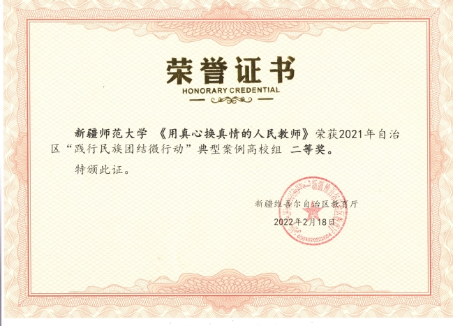 我校组织部报送作品《用真心换真情的人民教师》获得“践行民族团结微行动”典型案例高校组二等奖;学生工作部(处)报送作品《聚是一团火,散是满天心》获得“讲好身边的民族团结故事”视频作品高校组二等奖,作品《在新师,遇见更好的我们》获得“讲好身边的民族团结故事”视频作品高校组三等奖;预科教育学院报送作品《以中华文化铸魂,绘民族团结画卷》获得“加强民族团结教育,铸牢中华民族共同体意识”典型案例高校组三等奖。
