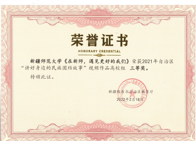 《在新师,遇见更好的我们》获得“讲好身边的民族团结故事”视频作品高校组三等奖