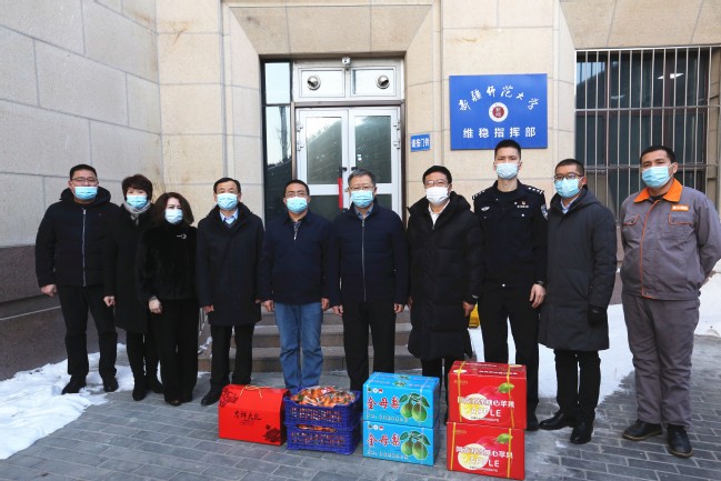 牛辞旧岁,瑞虎迎春,万家团圆,喜庆新年。2月1日农历大年初一上午,校党委书记葛国,校党委常委、副校长王晓峰,副校长古丽帕丽·阿不都拉,校党委常委、副校长帕力旦·吐尔逊等校领导带着校党委的深情关怀和美好祝福,分组前往新疆师范大学温泉校区、昆仑校区和文光校区,看望慰问了春节期间仍坚守在各工作岗位上的一线干部职工和社区、警务站工作人员,向大家致以虎年新春的美好祝福,祝愿大家新春愉快,虎年大吉。