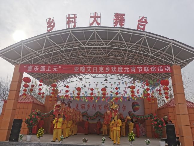 当天,亚喀艾日克乡还举办了“喜乐迎上元”元宵节民俗文化联谊活动。各村文艺表演队欢聚在亚喀艾日克村乡村大舞台,震天的锣鼓,威武的雄狮,欢腾的巨龙,优美的汉代舞蹈和充满活力的儿童舞,让初春的亚喀艾日克村呈现一派祥和氛围,村民们载歌载舞庆盛世,欢欢喜喜闹元宵。